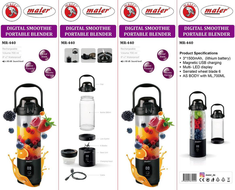 اگر به دنبال یک مخلوطکن قدرتمند، سبک، قابل حمل و مدرن هستید که بتواند هر جا و هر زمان همراه شما باشد، Maier MR-440 دقیقاً همان چیزیست که نیاز دارید!
