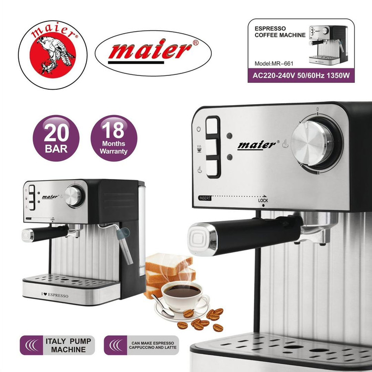 دستگاه اسپرسوساز مایر مدل MR-661 یکی از محصولات پرقدرت و خوشساخت این برند معتبر آلمانی است که با طراحی ساده اما شیک و عملکرد حرفهای، تجربهای لذتبخش از نوشیدن یک فنجان اسپرسو واقعی را برای شما به ارمغان میآورد. این دستگاه با فشار 20 بار و توان مصرفی 1350 وات، قدرت بالایی برای استخراج طعم و عصاره کامل دانههای قهوه دارد.