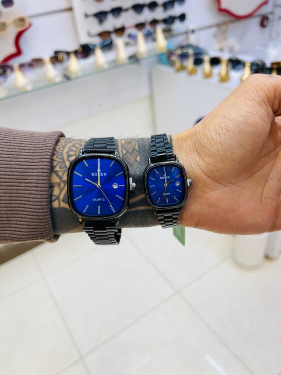 🎀 طراحی این ست به گونهای است که هم برای خانمها و هم برای آقایان جذاب و شیک باشد. بند استیل ضد زنگ مشکی به همراه صفحه آبی لاکچری، ترکیبی خاص و منحصر به فرد ایجاد کرده که به راحتی با هر استایلی هماهنگ میشود؛ چه استایل رسمی و چه استایل روزمره.