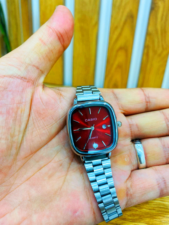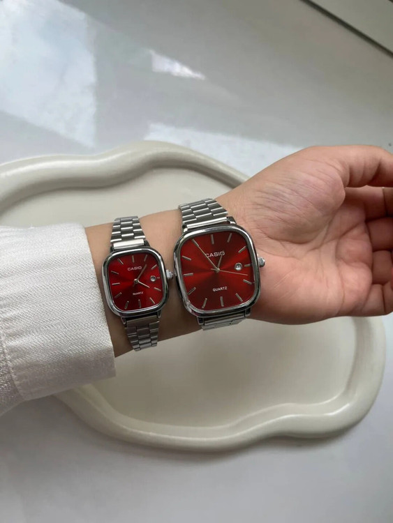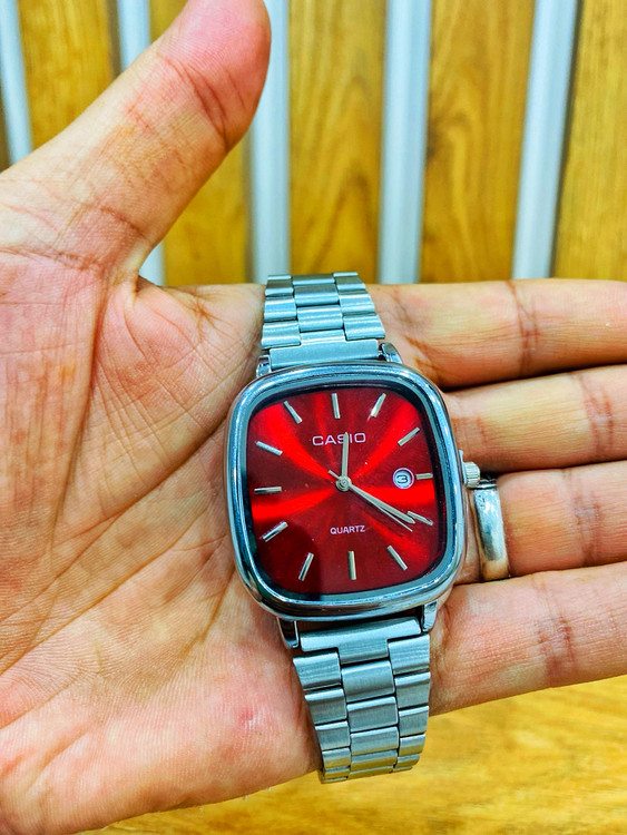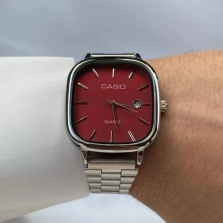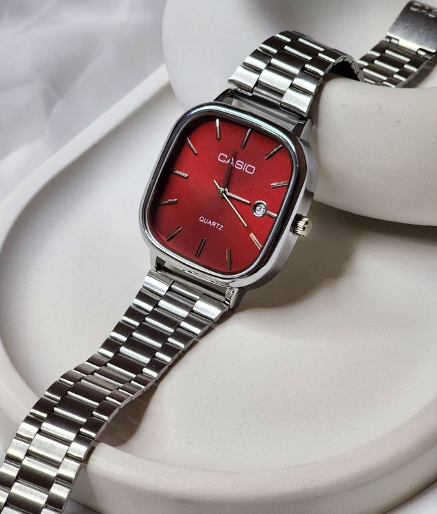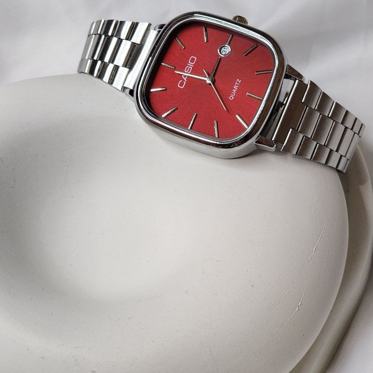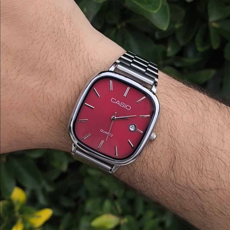 ساعت مچی کاسیو مدل اولد مانی صفحه قرمز و بند استیل