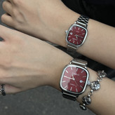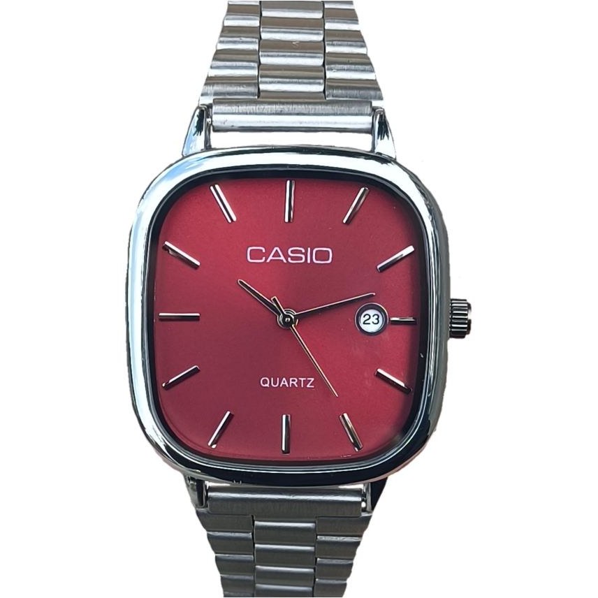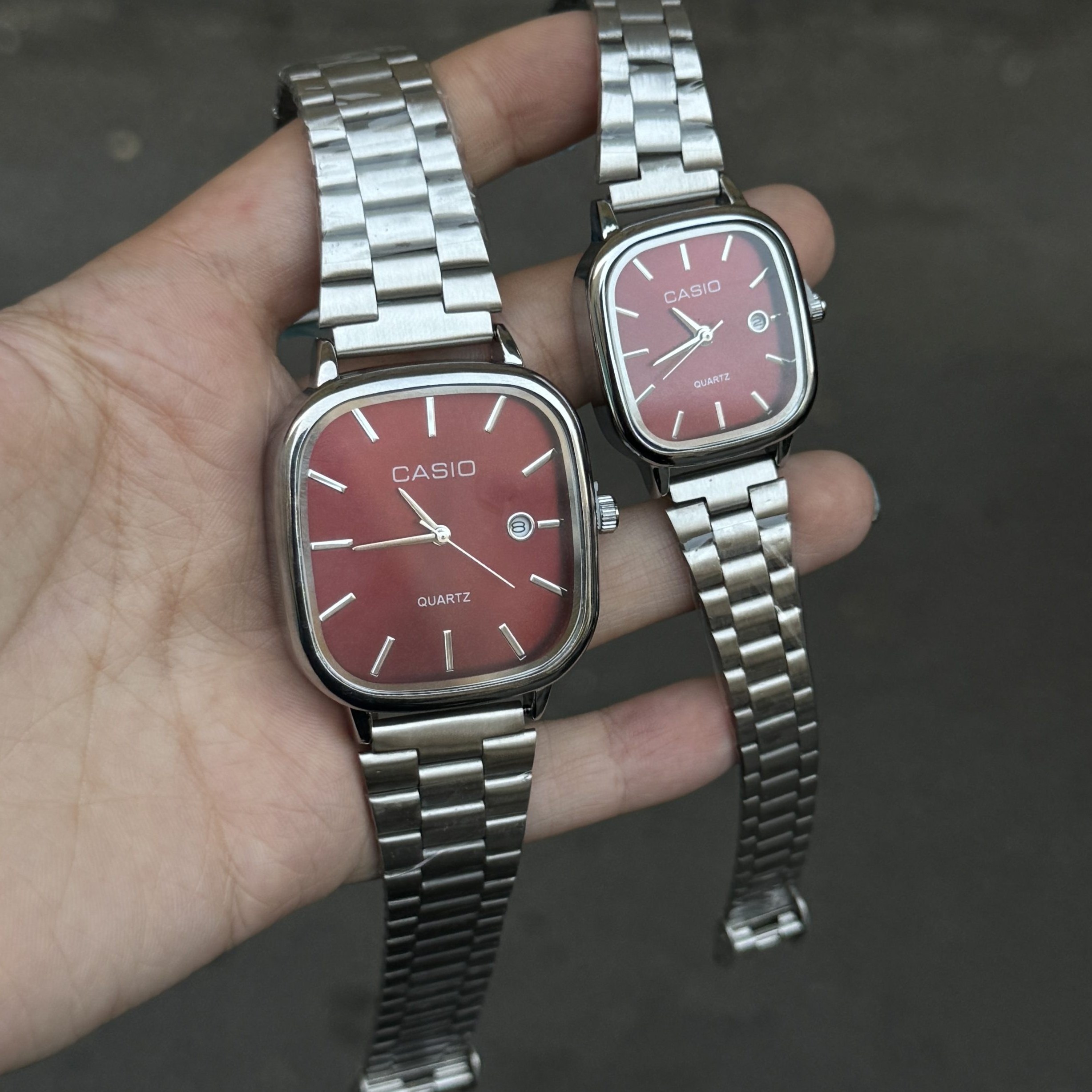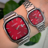 ست ساعت مچی زنانه و مردانه کاسیو Casio | صفحه قرمز و بند استیل
