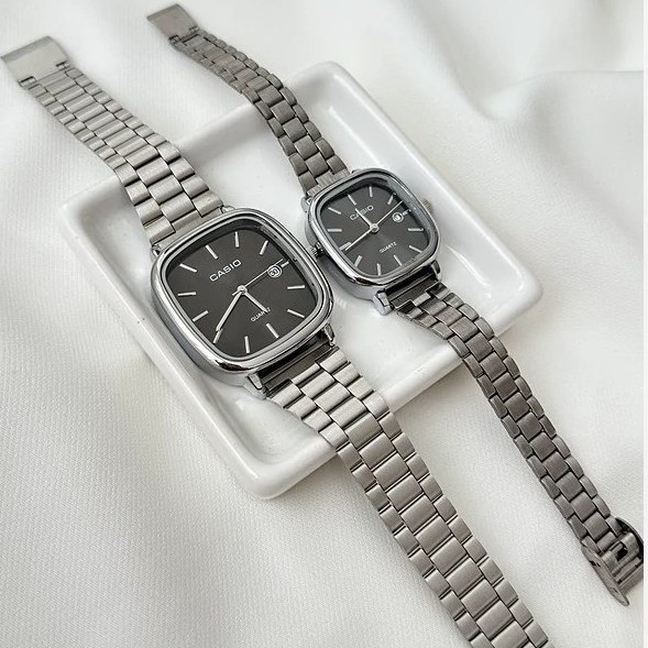 ست ساعت مچی زنانه و مردانه کاسیو Casio | صفحه مشکی و بند استیل