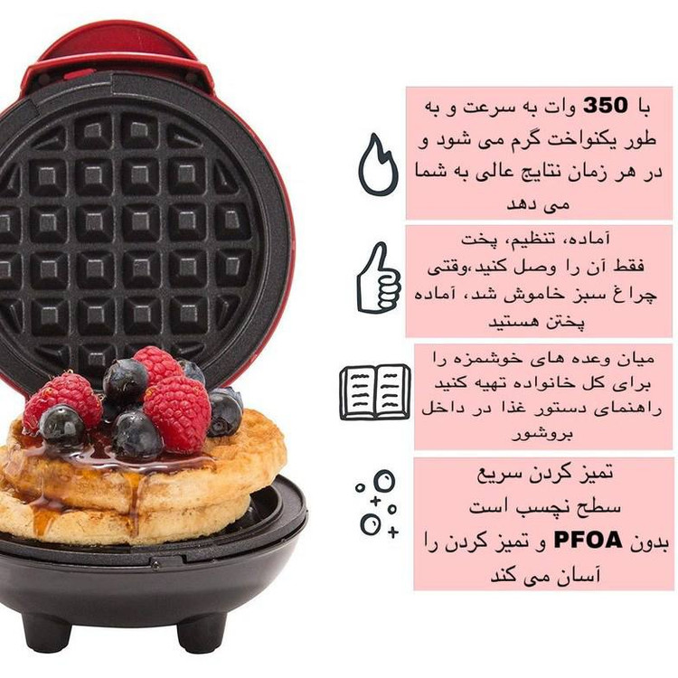 توان 350 وات برای آمادهسازی سریع و یکنواخت وافل