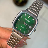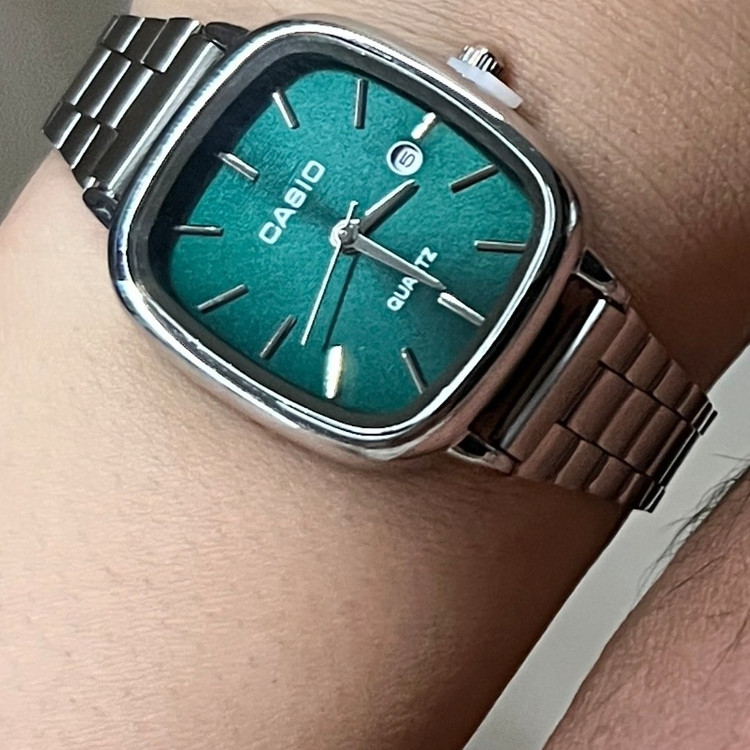 ساعت مچی مردانه کاسیو مدل اولدمانی بند فلزی استیل صفحه سبز