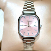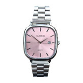 ساعت مچی کاسیو مدل اولدمانی بند فلزی استیل صفحه صورتی کد۲