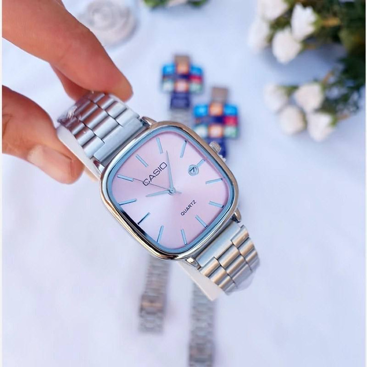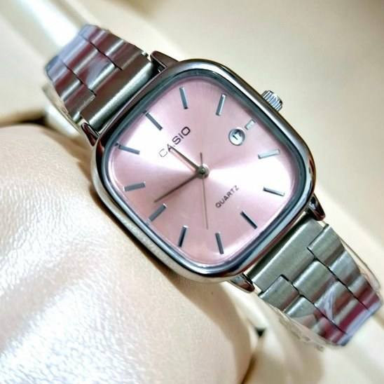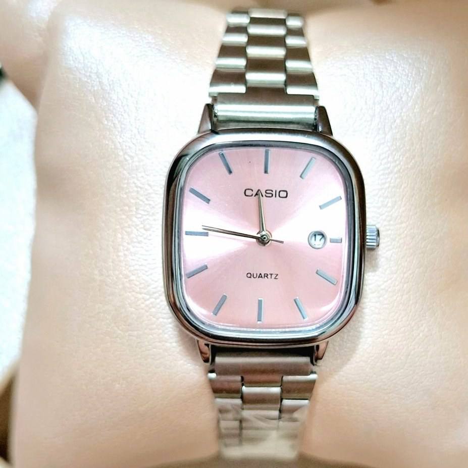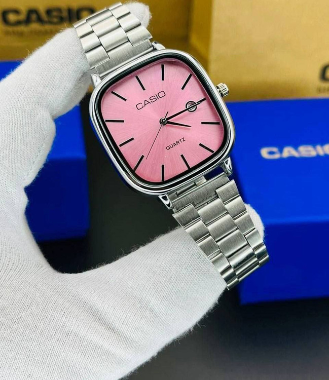 ساعت مچی کاسیو مدل اولد مانی بند فلزی استیل صفحه صورتی کد۲